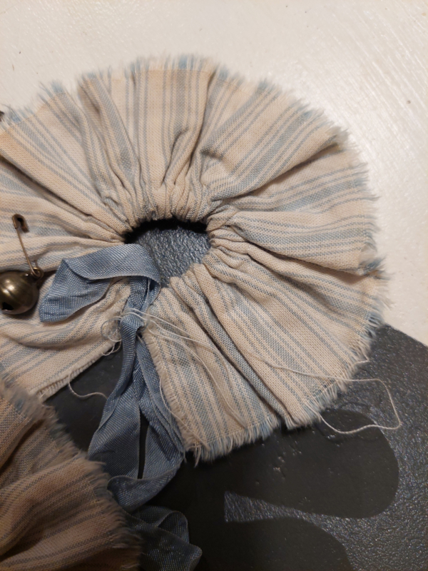 Kleur: Ecru / lichtblauwe gestreept. (Door de koffie geverfd)