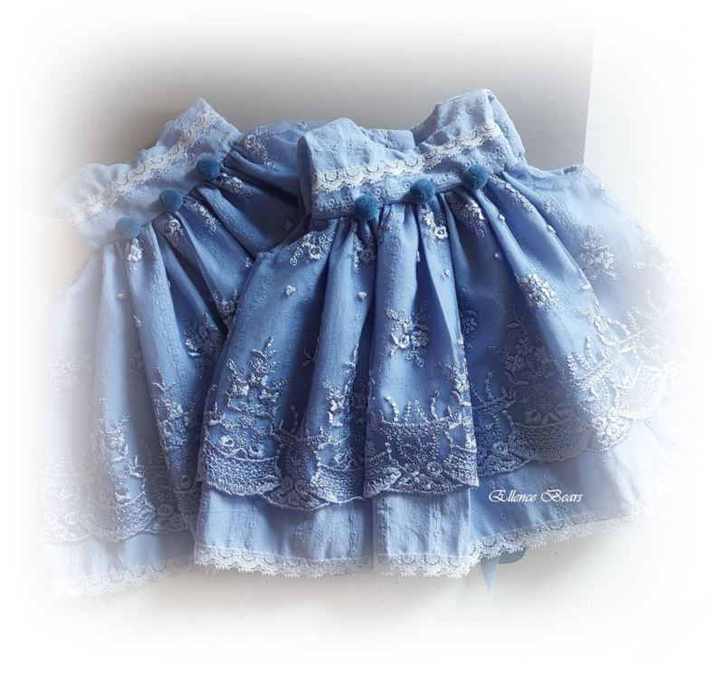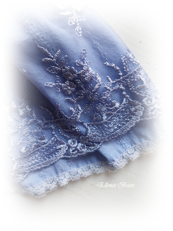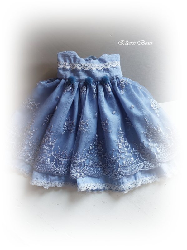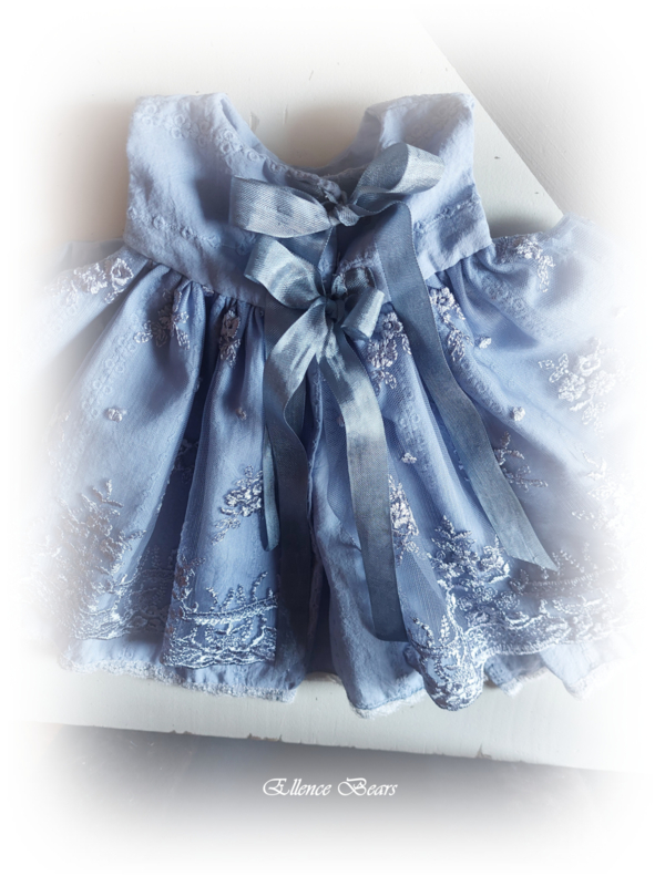 OverzichtLief, mooi jurkje gemaakt uit een combinatie van oudblauwe katoen met daarover een prachtige oudblauwe kant met mooie rand.