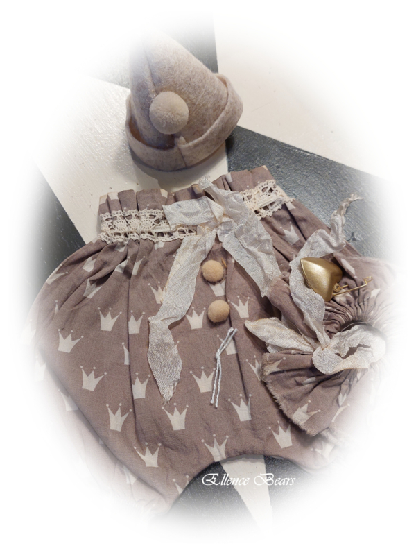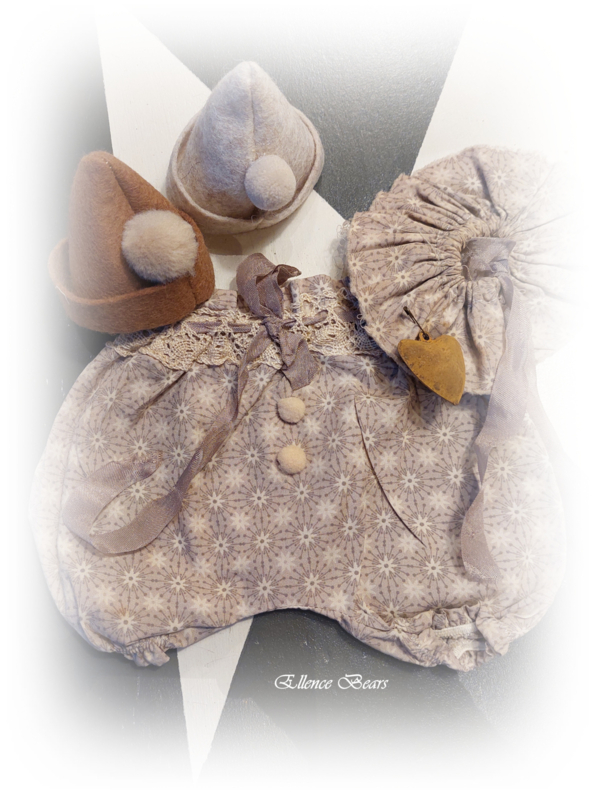 Het setje past voor een beertje van ongeveer 35cm en is door de koffie geverfd voor een mooie brocante uitstraling.