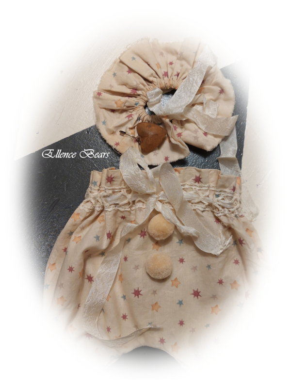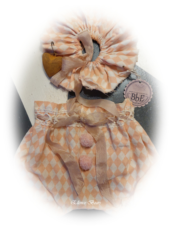 Aan het kraagje is een roestig hartje bevestigd en op het broekje 2 oudgrijze…€ 16,00